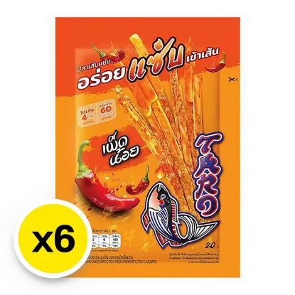 ทาโร ปลาสวรรค์ เส้นชุบน้ำจิ้ม รสปลาหมึก เผ็ดมาก 18 ก. x 6